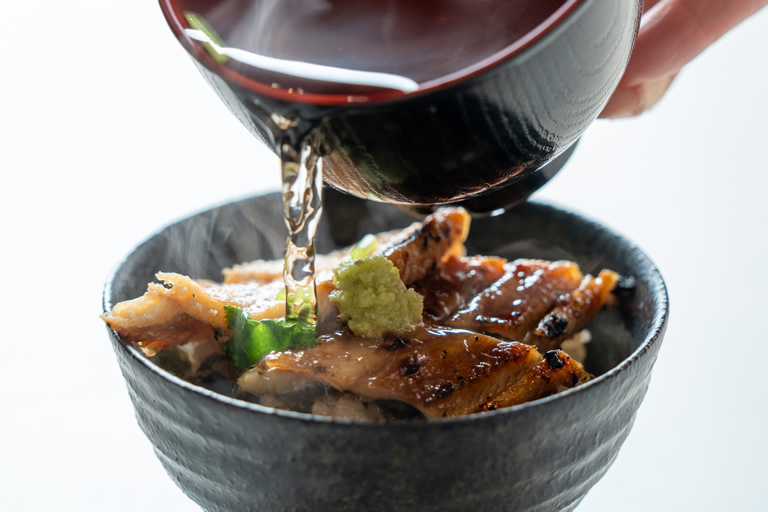 「炭焼あなご やま義」のあなごめしは、「まずはそのまま」「わさびを添えて」「お吸い物をかけてお茶漬け風に」と3種類の食べ方で頂きます。ひつまぶしのような感じです。