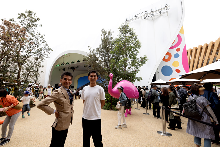 本日3つ目の海外パビリオンは、エミューやカンガルーのモニュメントが迎えてくれる「オーストラリア館」。