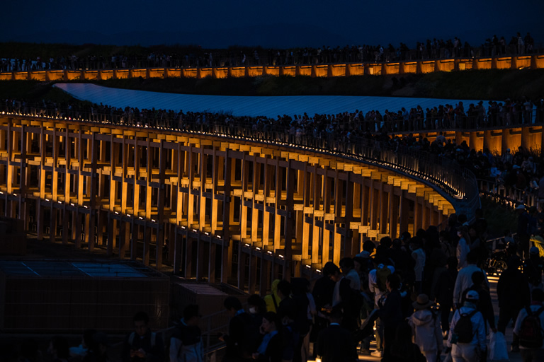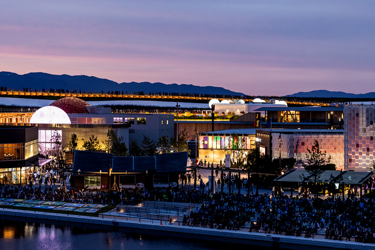 写真映えするスポットが目白押しで、僕のイチオシは大屋根リングの上から見る夕景。感動的な光景です!