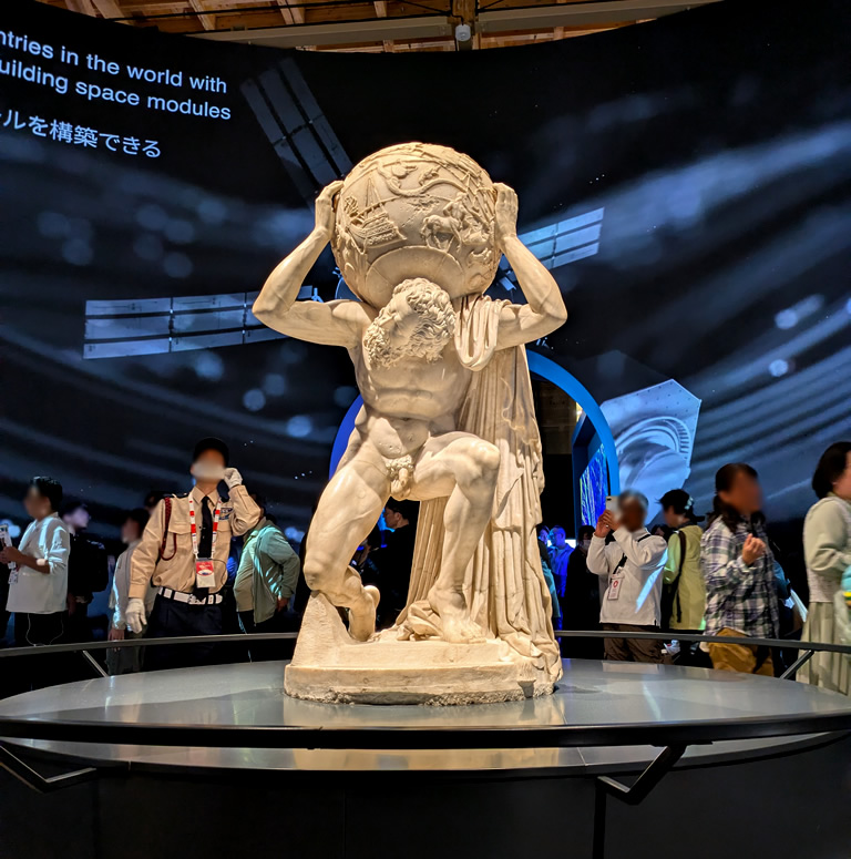 古代ローマの世界的な文化遺産である「ファルネーゼ・アトラス」の実物が初来日ということで、大人気のパビリオンの一つです。毎日コンサートなどのイベントも実施されていて、内容見どころ盛りだくさん。