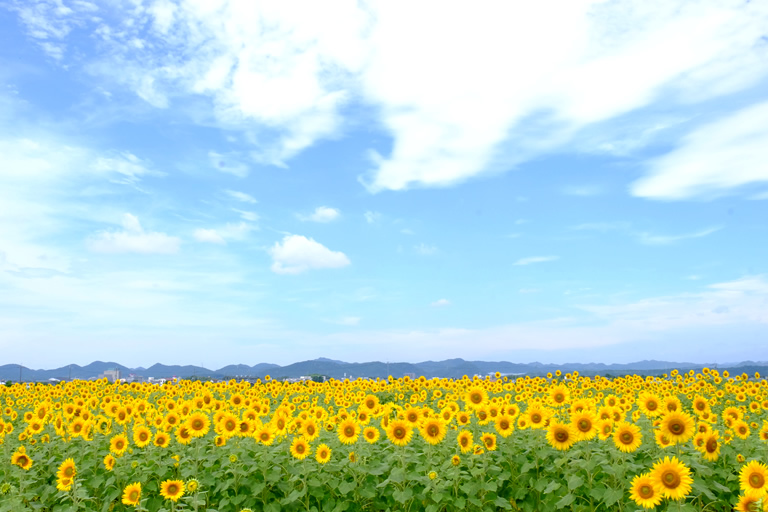 兵庫県の西播磨地区、岡山県に隣接する“幸せの黄色いまち佐用町”では、約66万本のひまわりが咲き乱れますよ!