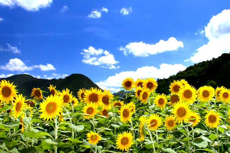 初夏のホタル&青もみじ、盛夏には50万本のひまわりが一面に広がる「たんとう花公園」