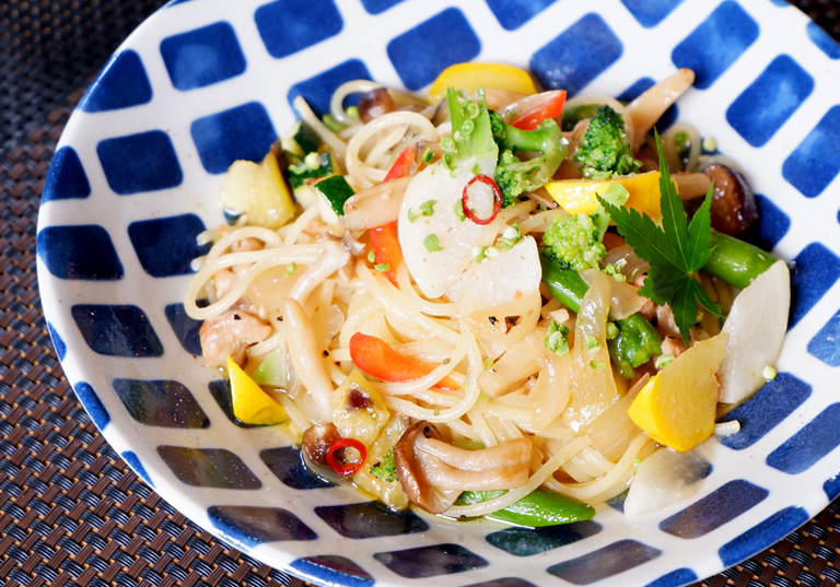 自家菜園や地元農家さんからの新鮮な野菜や果物をふんだんに使ったパスタやデザートが多彩に揃っています。