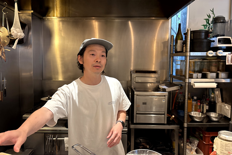 店主の谷垣伸太朗さんは東京でレストランを経営後、地元である養父市でお店をオープン。但馬地域の食材のおいしさを発信したいと、但馬鶏や八鹿豚、地場野菜など、使用するほどんどの食材が地元産のもの。各地のイベントにも積極的に出店されています。