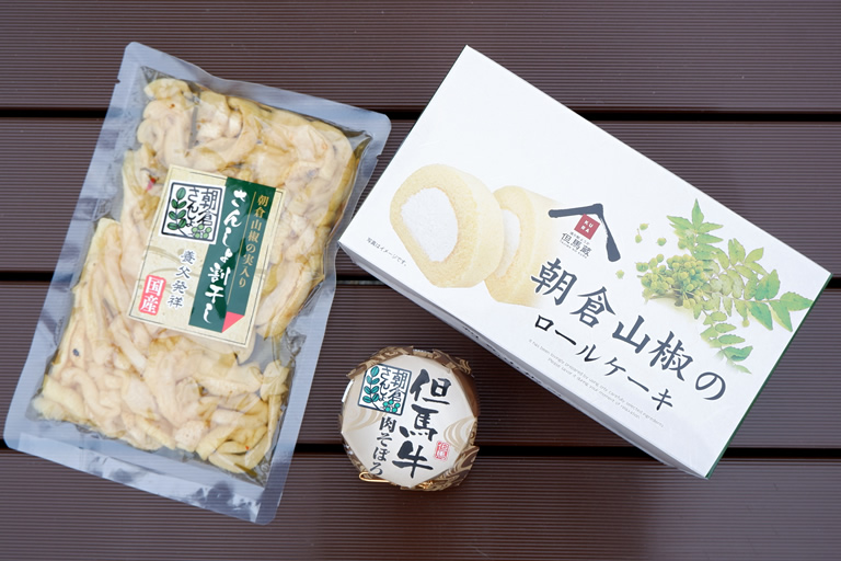 1位「朝倉山椒ロールケーキ(冷凍)」1,680円(税込)、2位「朝倉さんしょ割り干し」595円(税込)、3位「朝倉山椒入り但馬牛肉そぼろ」680円(税込)だそう。