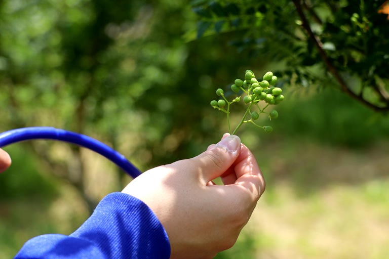 収穫は5月下旬~6月上旬の約1週間のみで、山椒を傷つけないように収穫は手摘み。