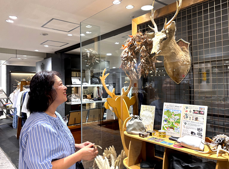 「ニホンジカまるごと一頭有効活用」を実現すべく、25年前に元町のメンズセレクトショップ「ハウディードゥーディー」からはじまり、現在ではアパレル3店舗、飲食3店舗を運営。兵庫県内の各地にある認定施設で加工処理された鹿のすべての部位を自社で巡回回収し、皮と肉それぞれの冷凍貯蔵施設も整備するなど、一から利活用の仕組みづくりを行ってこられたそう。