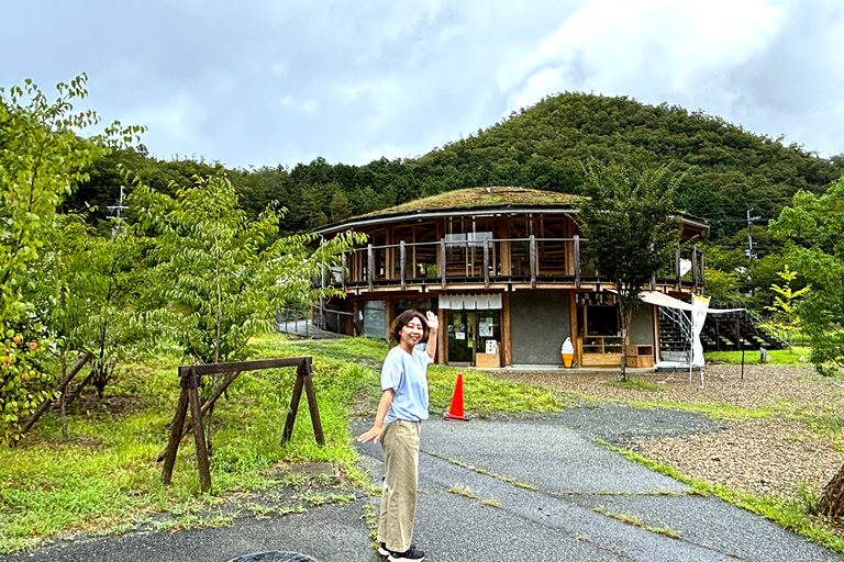 敷地の中心にある木造2階建ての円形建物内には、直売所やカフェがあり、2階は自由に使える休憩スペースもあります。