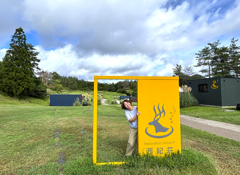 「やまもりの湯」から歩いてすぐの場所に吊り橋があって、渡った場所にあるのが「tanoshic resort 西紀荘」です。