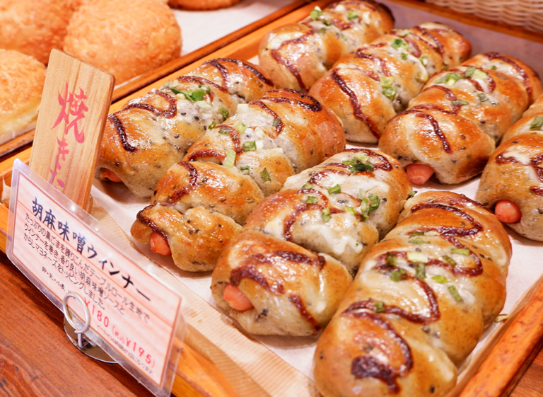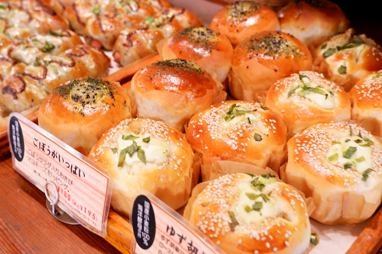 種類が豊富なパンには、生地に米粉や雑穀などを混ぜ込んだだけでなく、お餅や漬物を具材にしたり、味噌やわさび、ゆず胡椒を効かせたものなど、他では食べたことがないパンがいっぱい。