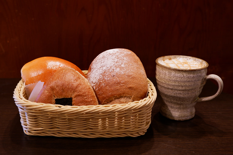 店内にはカフェスペースが18席分あり、焼きたてをその場で頂けるので、朝やランチ時は大賑わい。ドリンク類も良心的な価格です。