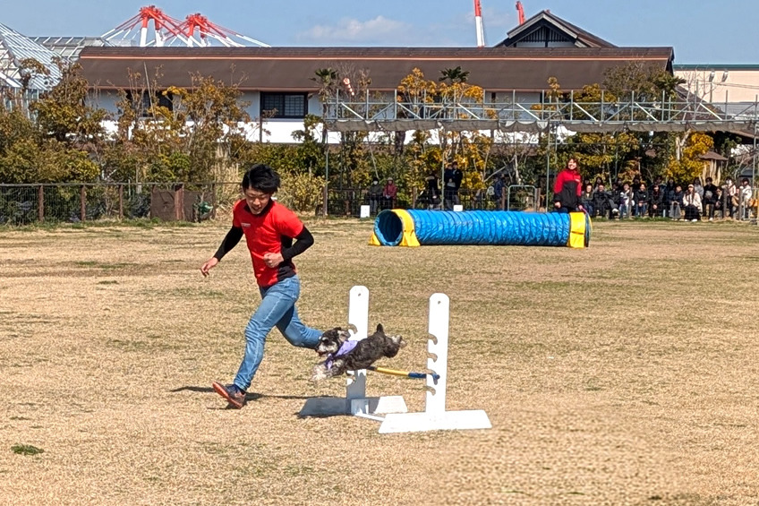 ハードルやフラフープなどを走り抜けたり、フリスビーキャッチを披露してくれたり、犬たちのかっこいいパフォーマンスは、息子の一番のお気に入り。