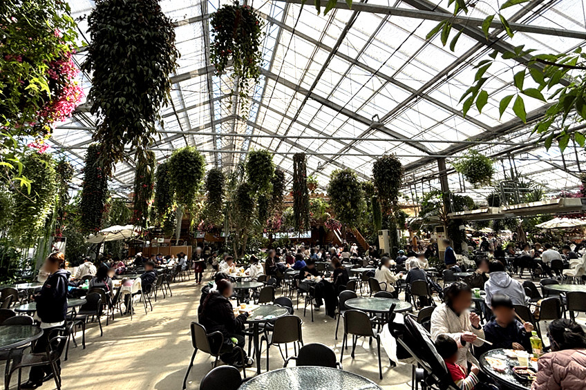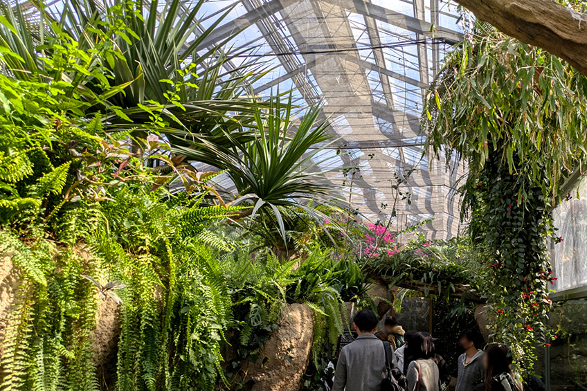 ② 全天候型:園内の7割が巨大なグラスハウス(屋内)になっていて、冷暖房完備なので、雨の日や真夏・真冬でも快適。