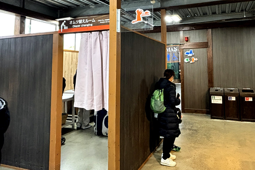 ⑥ 授乳室&おむつ替えスペース:個室タイプの授乳室が2か所、オムツ替えスペースが3か所あります。トイレもベビーカーのまま入れるゆったりした設計。