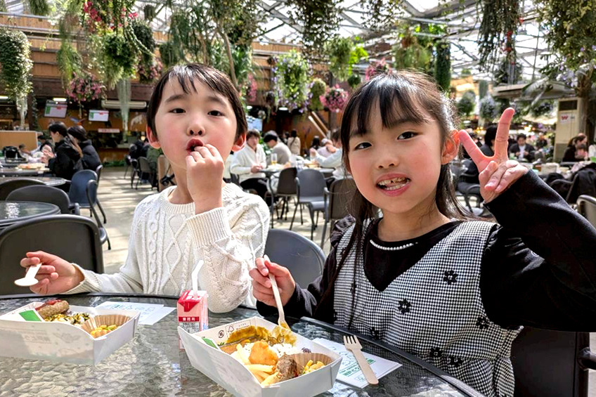 ⑨ お弁当の持ち込みOK:飲食店前の広々とした休憩エリアは、持ち込みのお弁当の持ち込みができます。アレルギーや、好き嫌いが多い子でも安心です。
