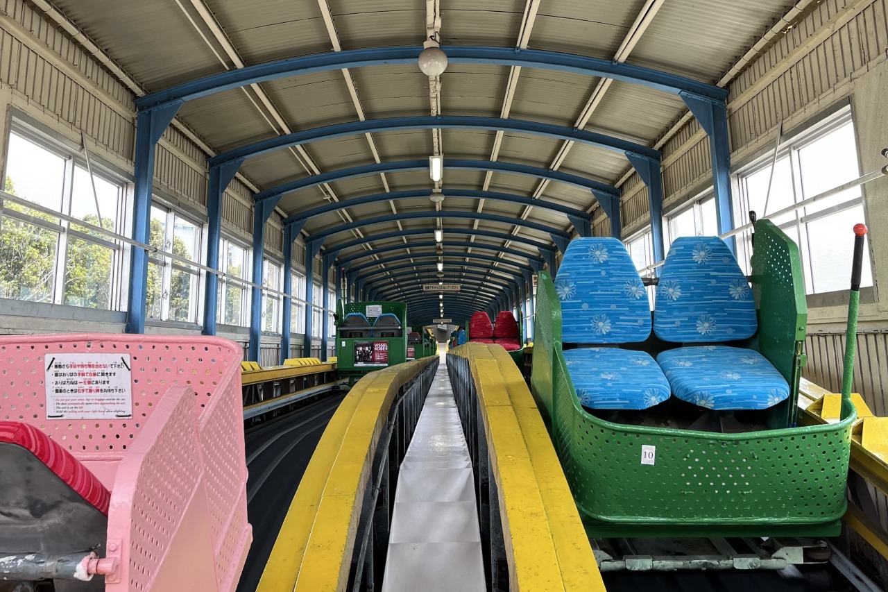 山の上にあり、美しい景色と個性豊かなアトラクションの両方を満喫できる須磨浦山上遊園。山の上までは、ロープウェイなどを乗り継いで向かいます。まずは山陽電車の須磨浦公園駅から「須磨浦ロープウェイ」で鉢伏山上駅へ。須磨の海と明石海峡大橋、淡路島まで一望できる絶景パノラマは必見!空中散歩を楽しんだら、次はSNSでも話題の「カーレーター」で回転展望閣へ!2人乗りのカゴのようなカーレーターは、公式も認めるほどの「乗り心地の悪さ」がやみつきになる面白さ。ゴトゴト揺られるユニークな体験が待っています。