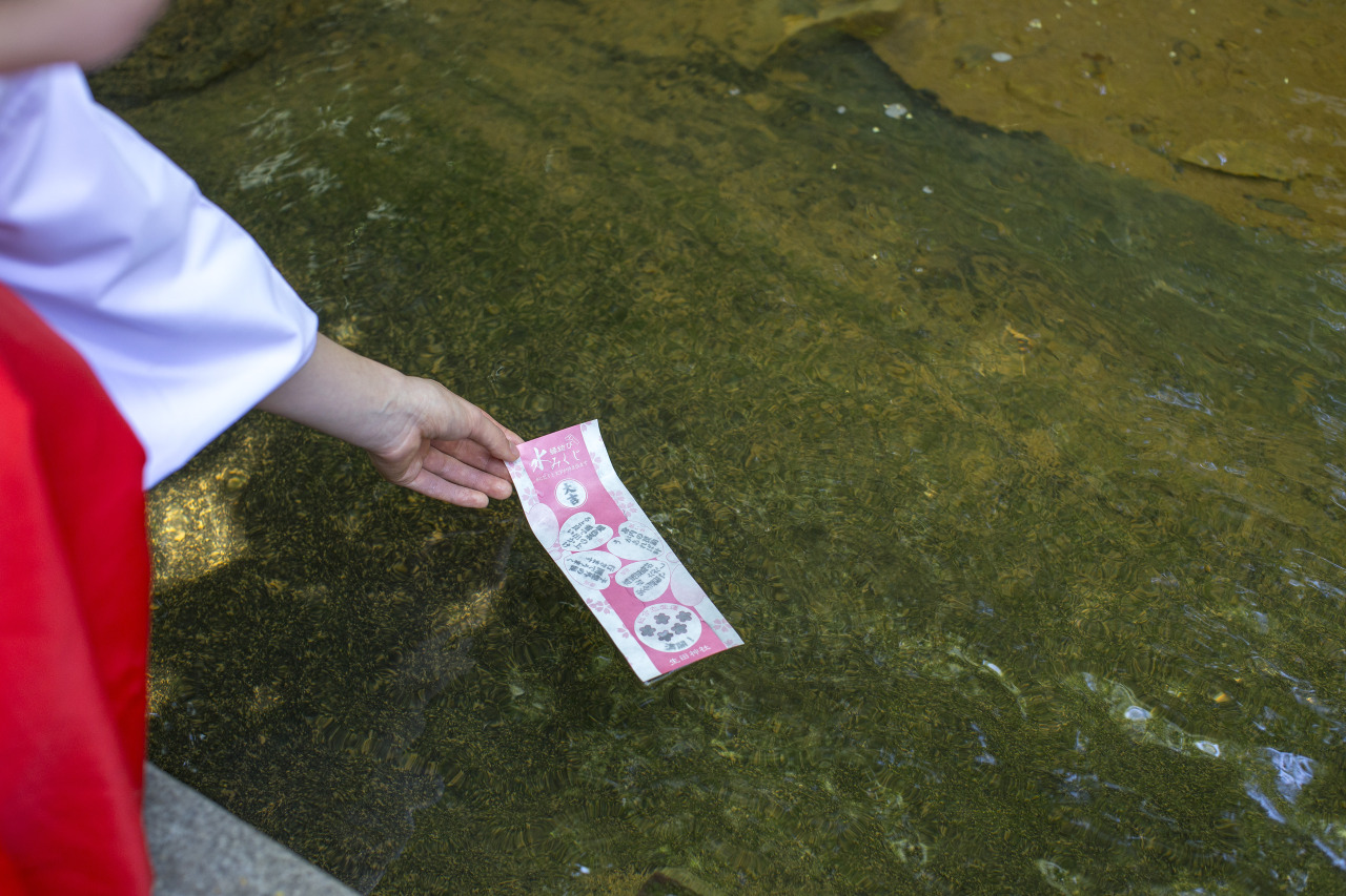 生田神社ならではの「水みくじ」も参拝者に人気。こちらは生田の森の中ある池にそっとおみくじを浸すと文字が浮かび上がってくるおみくじで、その神秘的な様子に思わず心を奪われてしまうでしょう。また、御朱印は生田の森や朱色の鳥居をあしらった美しいデザイン。季節や行事ごとに授与される限定御朱印も必見です。