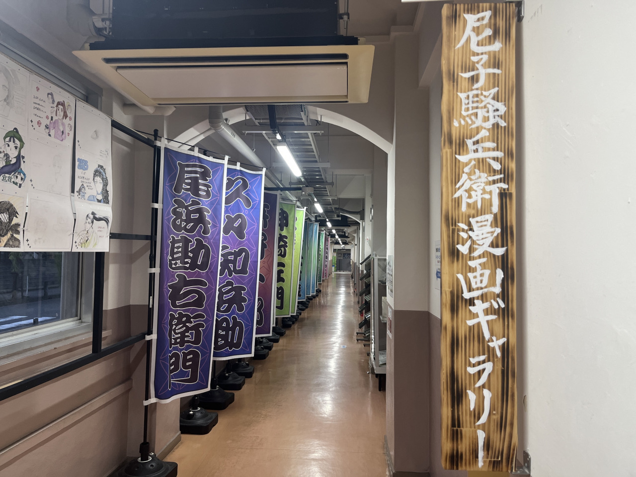 尼崎出身の人気漫画家・尼子騒兵衛(あまこそうべえ)の作品を紹介するギャラリー。ここではなんと、国民的アニメとして世代を超えて親しまれている、アニメ『忍たま乱太郎』の原作漫画『落第忍者乱太郎』の原画を間近で見ることができます。元小学校の建物を活かして、“忍術学園”をイメージした展示スペース、ファンが交流するお絵描きスペースもある小規模ながらも個性的なギャラリーです。