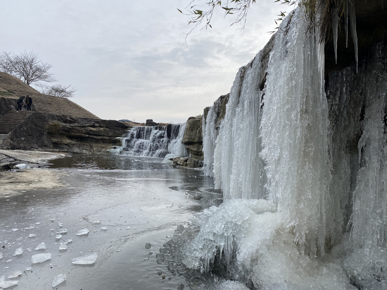 兵庫県の中心部、三木市吉川町にたたずむ「黒滝」は、自然の静けさに包まれた癒しの滝スポット。木々に囲まれた小径を進むと、ひっそりと姿を現します。この滝は落差約4m、幅約30mと横に広く、雄滝・雌滝の2段に流れ落ちる構造が特徴的です。川幅いっぱいに広がる姿から、地元では「三木のナイアガラ」と称されることも。岩肌を滑るように流れ落ちる水のカーテンは、思わず息をのむほどの美しさ!冬に氷点下を下回る日が続くと、滝が凍る「氷瀑(ひょうばく)」が見られることもあり、四季折々に異なる表情を楽しめます。