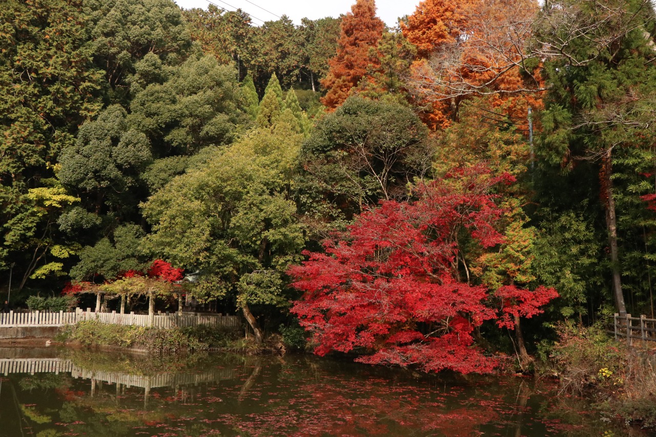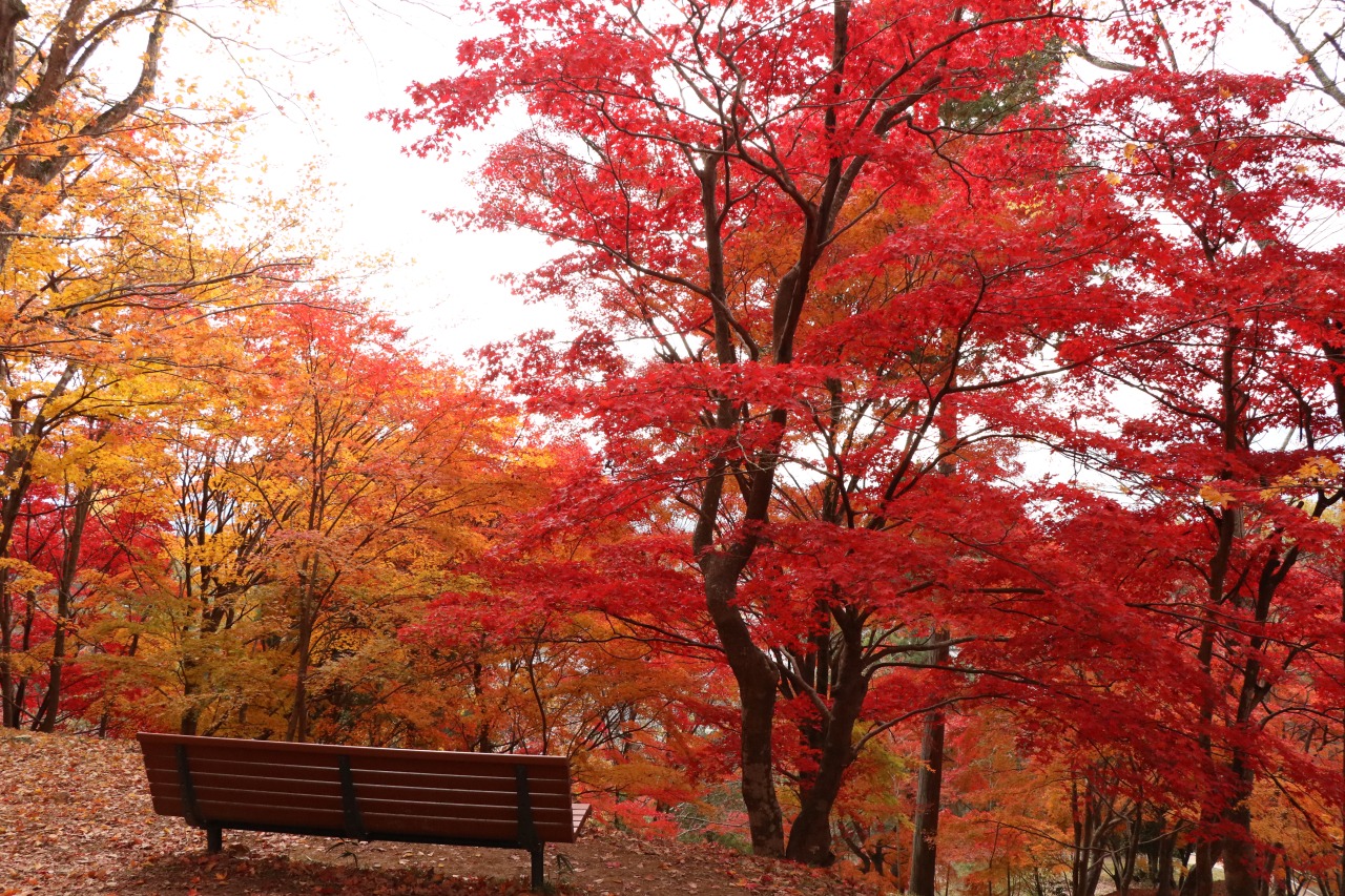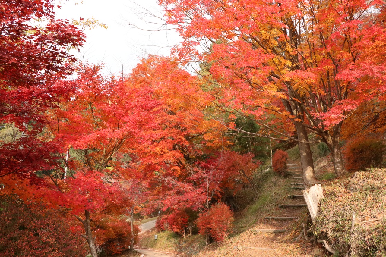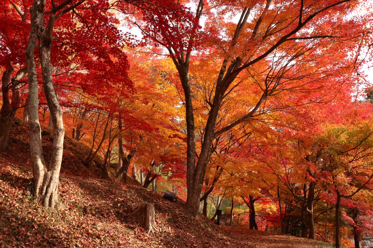 宍粟市(しそうし)にある最上山公園「もみじ山」は、四季折々の自然美に包まれる憩いの場。特に秋には紅葉の名所として知られ、多くの訪問客を惹きつけます。11月中旬から下旬にかけては、山全体が赤・橙・黄に染まり、まるで燃えるような美しさに。遊歩道を彩るカエデのトンネルはフォトスポットとしても人気です。園内には弁天池もあり、風のない日には水面に映る「逆さ紅葉」も美しい景観を生み出します。