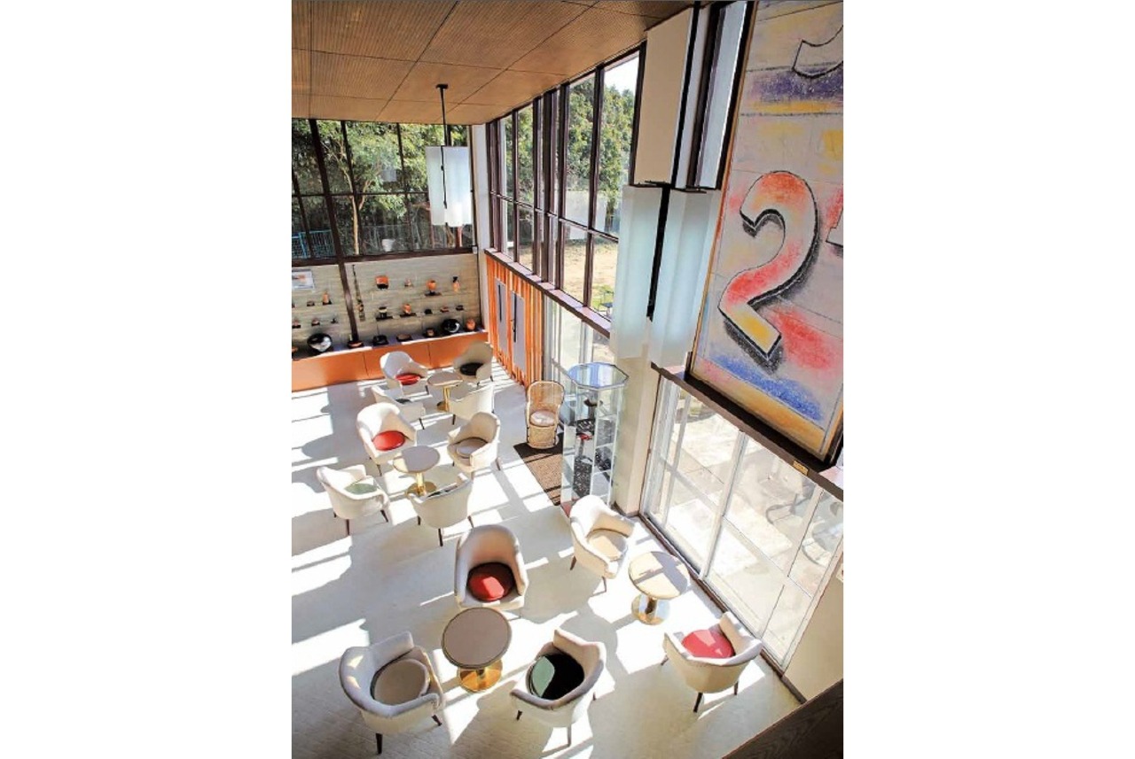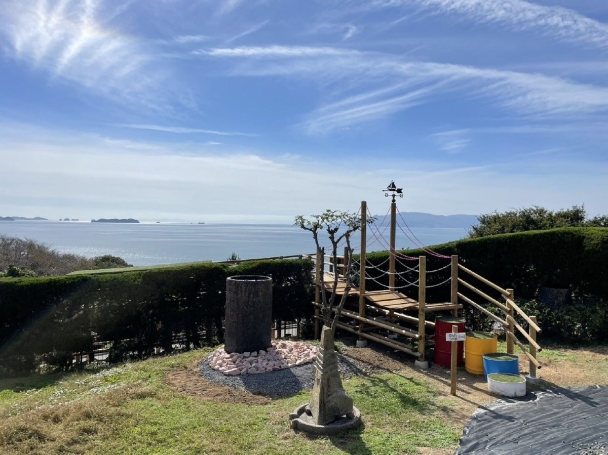 庭園を散策するなら、水滴が琴のような澄んだ音色を奏でる「水琴窟(すいきんくつ)」や高さ約5mの木製「天使のブランコ」も必見。特に水琴窟は約10種類も設置されていて、それぞれ違った音色を楽しむことができます。散策の後は、カフェスペースでひと休み。雲火焼の器で抹茶やコーヒーをいただきましょう。