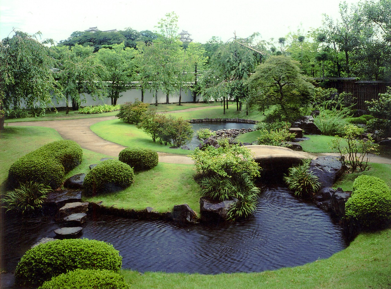 世界遺産・姫路城の西御屋敷跡に位置し、姫路城を借景とした回遊式の日本庭園。1992年に開園し、江戸時代の様式を取り入れた広大な敷地には、それぞれ趣の異なる9つの庭園が広がります。