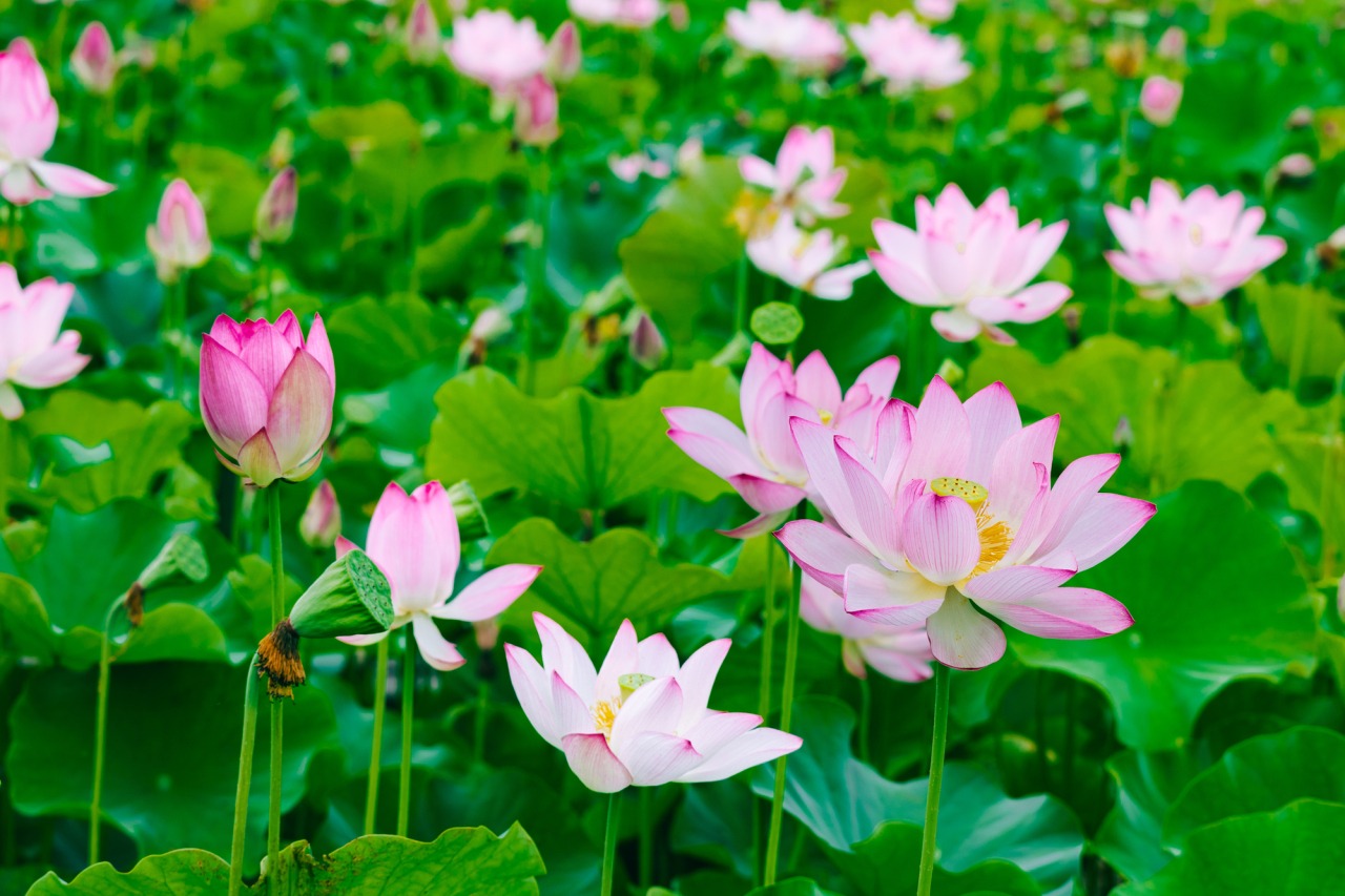 同じ敷地内にある「芝桜の小道」「蓮の花苑」は花の名所としても知られています。4月中旬~5月上旬頃には芝桜がピンクの絨毯のように咲き誇り、7月上旬頃には色とりどりの蓮が見頃を迎え、多くの観光客で賑わうヤマサ蒲鉾の名物のひとつです。