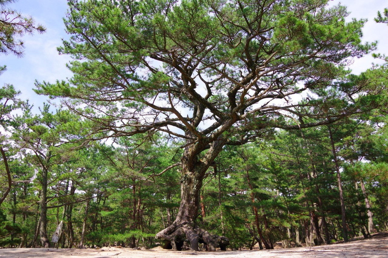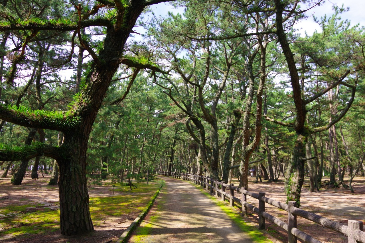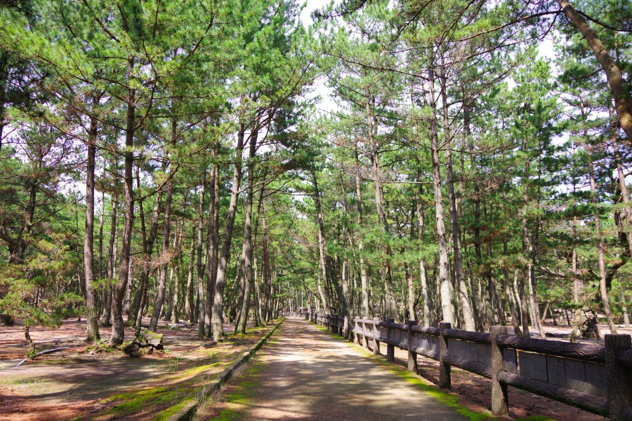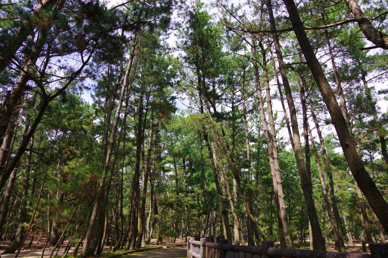 淡路島の西海岸に広がる「慶野松原」は、白い砂浜と約5万本の松林が約2.5kmにわたって続く、美しい景色が広がる場所です。映画や時代劇、雑誌のロケ地としても有名で、遠浅で穏やかな海を見て、松林の香りと心地よい潮風を感じながら、ゆったりと散策を楽しむことができます。