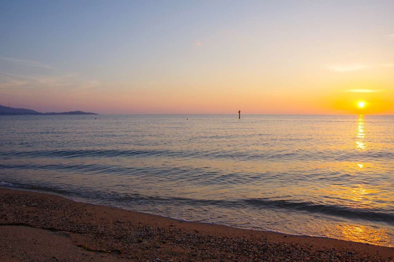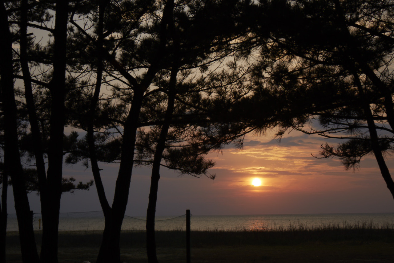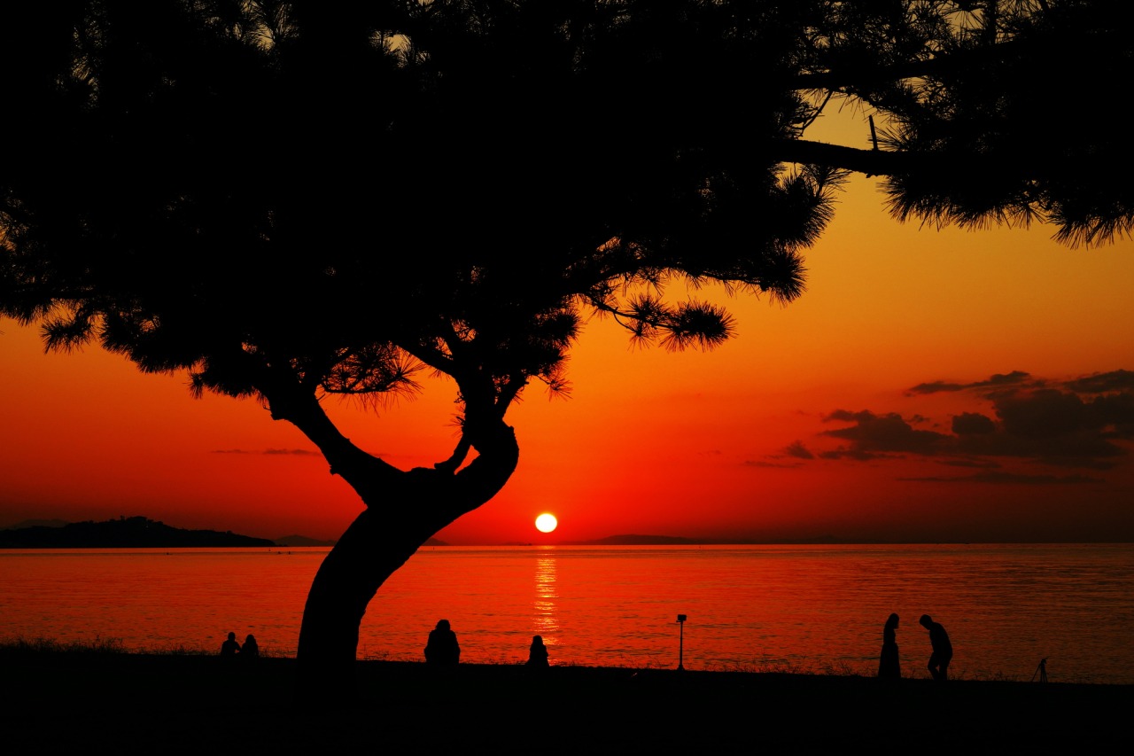 慶野松原の最大の魅力は、瀬戸内海に沈む幻想的な夕日。「日本の夕陽百選」にも選ばれており、空と海がオレンジやピンクに染まっていく光景は、なんとも言えない美しさです。