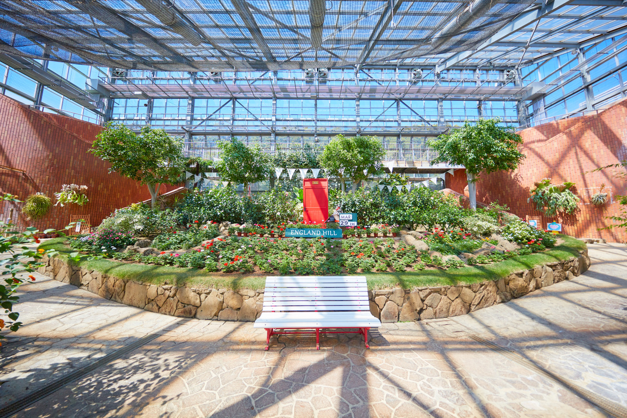 「イングランドエリア」は、四季折々の花々が咲き誇る美しいエリア。春はネモフィラ、夏はひまわり、秋はコスモスなど、季節ごとに異なる絶景が広がります。まるでイギリスの田園風景のようなイングリッシュガーデンに、うっとりすること間違いなし!