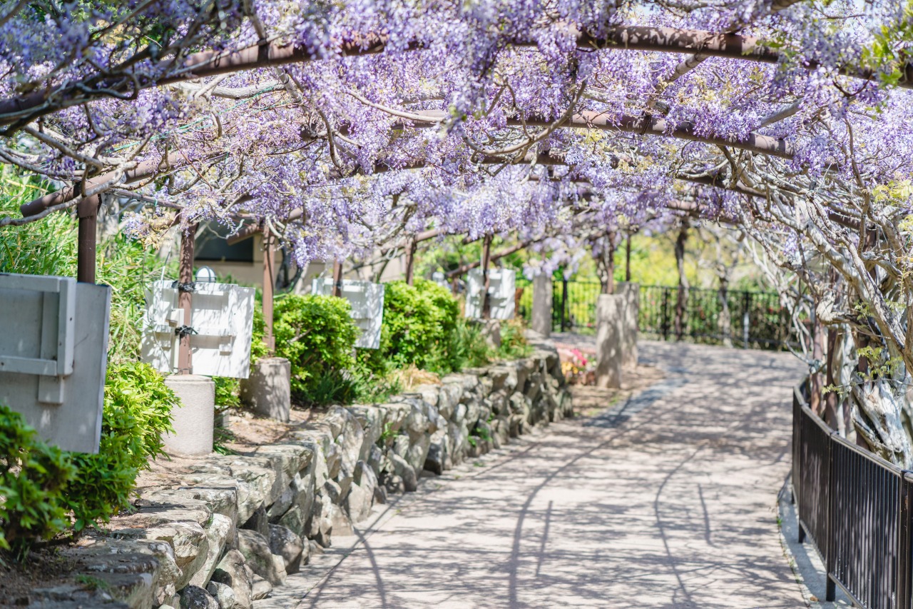 2025年10月にリニューアルオープンした、鳴門海峡に面した絶好のロケーションに位置する「道の駅うずしお」。大きな潮流がぶつかり合う場所にあり、屋上の絶景展望360°(サンロクマル)からは、鳴門海峡や大鳴門橋、そして淡路島の海を360度ぐるりと見渡せるパノラマビューが広がり、訪れた人の心を一気に掴みます。まさにここでしか味わえない絶景体験です!特に、潮の流れが速くなる満潮時と干潮時には、次々と現れる巨大な渦の力強さを肌で感じることができるのでおすすめです。事前に「潮見表」を確認しておくとベストタイミングで渦潮を見ることができますよ。駐車場の近くには藤の棚トンネルがあり、藤の花が咲く頃にはフォトスポットにおすすめです。