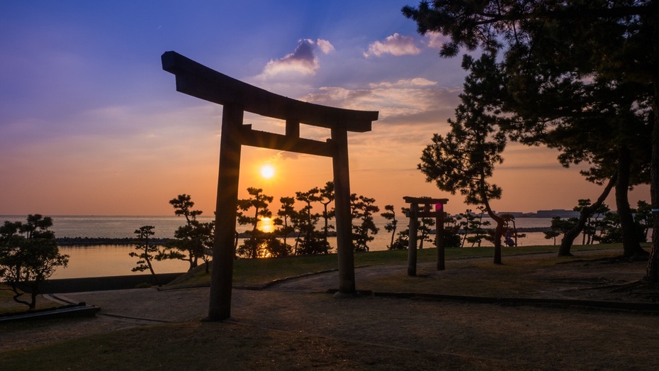 海路の神として古来より崇敬を受けてきた神社です。境内には初代明石城主・小笠原忠真が寄進した能舞台など多数の文化財が残るほか、春にはフジ、初夏にはアジサイが咲く花の名所でもあります。鳥居から播磨灘を臨む風景は多くの人を魅了します。