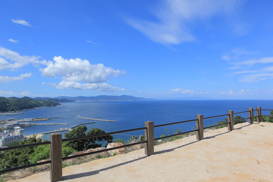 淡路島の植物の宝庫である三熊山。山上一帯には洲本城跡があり、国指定史跡に挙げられています。戦国時代、三好氏の重臣安宅氏の築城に始まり、仙石秀久、脇坂安治が居城しました。山頂の天守台からは洲本市街が一望できます。