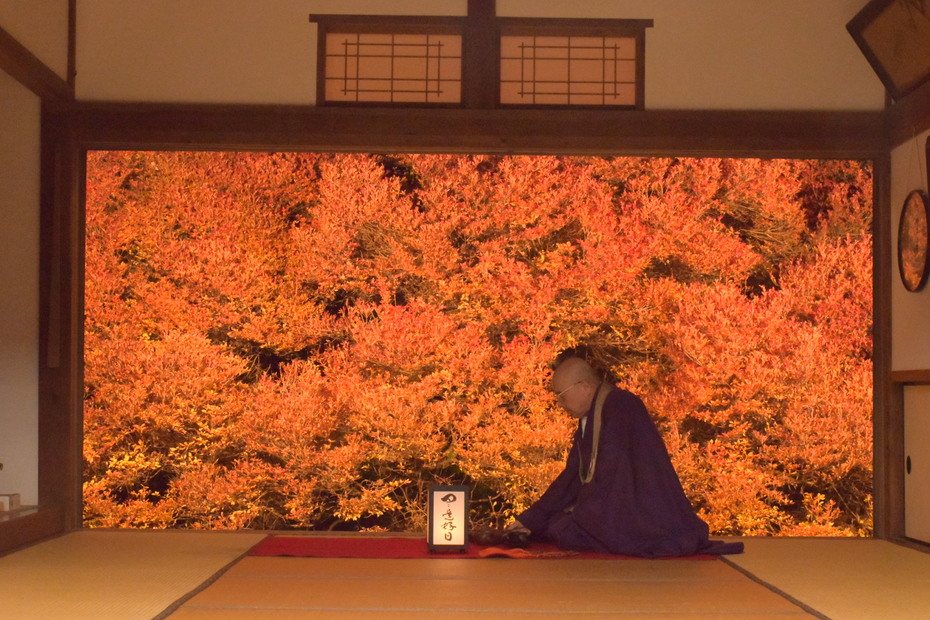 次に訪れたのは、兵庫県北部、但馬エリアにある京都との県境近くに佇む禅寺「安國寺」。晩秋には裏庭の「ドウダンツツジ」が色鮮やかに紅葉します。本堂に上がって、座敷の向こうに見るアングルがとても美しい。知る人ぞ知る、絶景スポットです。