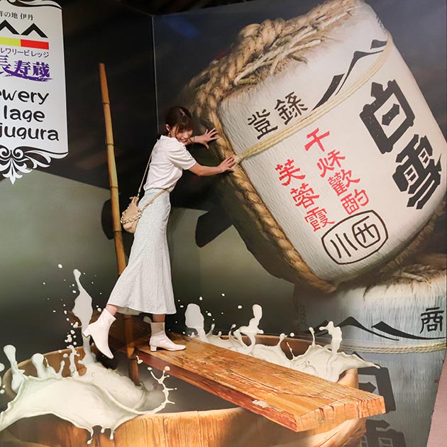 2階には、酒造りの道具などを紹介するミュージアムも併設されています。隣接ショップには生酒や高級酒など6種のお酒が1ショット100円で試せる有料試飲サーバーも設置。気に入ったお酒はその場で購入できますよ。