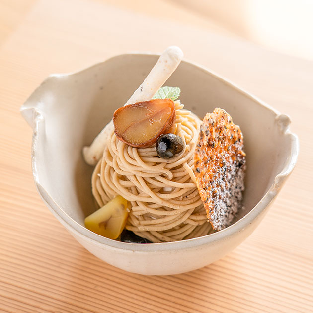 2021年には本店内にカフェ「小田垣豆堂」も誕生。趣ある石庭を眺めながら、丹波栗を贅沢に使った『ODAGAKIモンブラン』や、篠山牛のローストビーフなど、丹波ならではの食材を用いたスイーツやランチが頂けます。