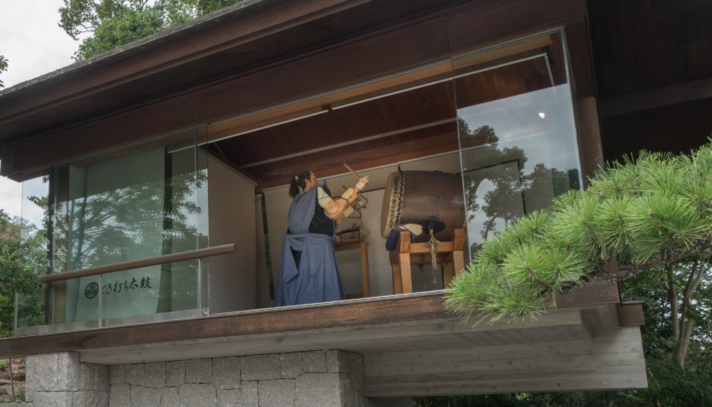 侍姿のロボットが2時間おきに太鼓をたたいて時を知らせてくれています。