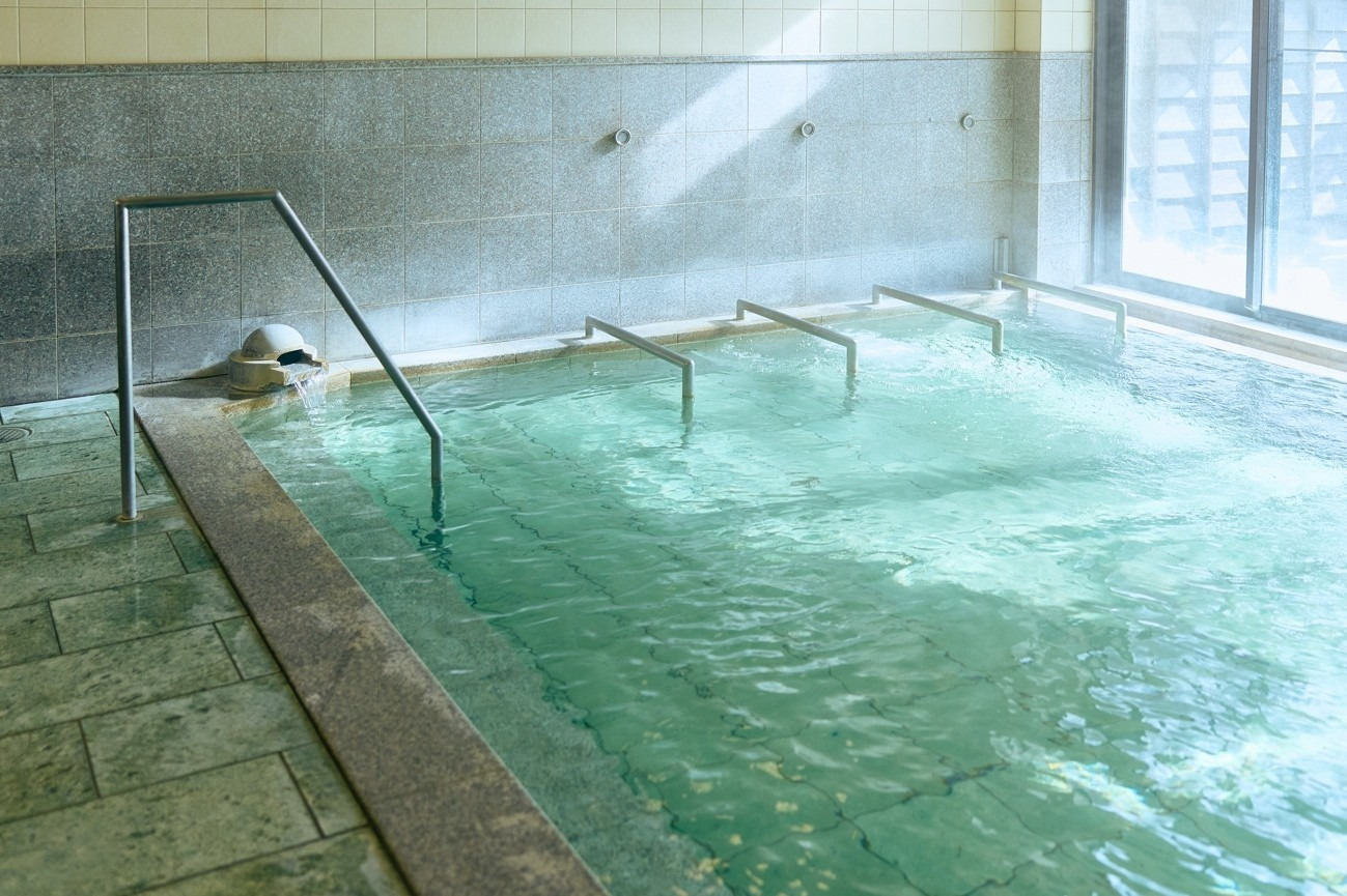 地元の人々にも愛される公衆浴場。源泉100%の無色透明な温泉は美肌の湯としても名高く、入浴後もしっとりとした肌触りの良さが自慢だ。