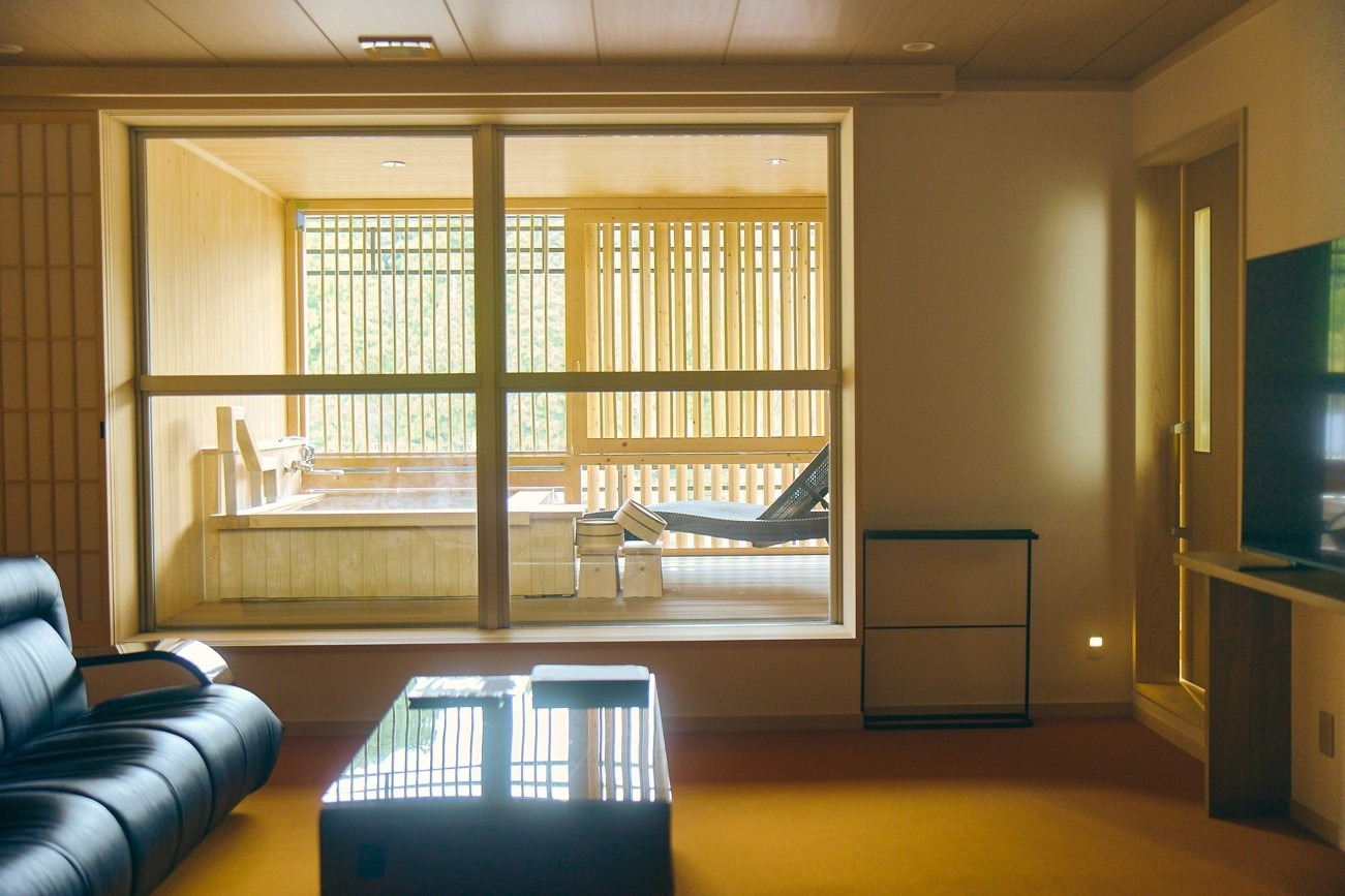 ユニバーサルデザインを随所に採用した露天風呂・ダイニングルーム付き客室も好評。