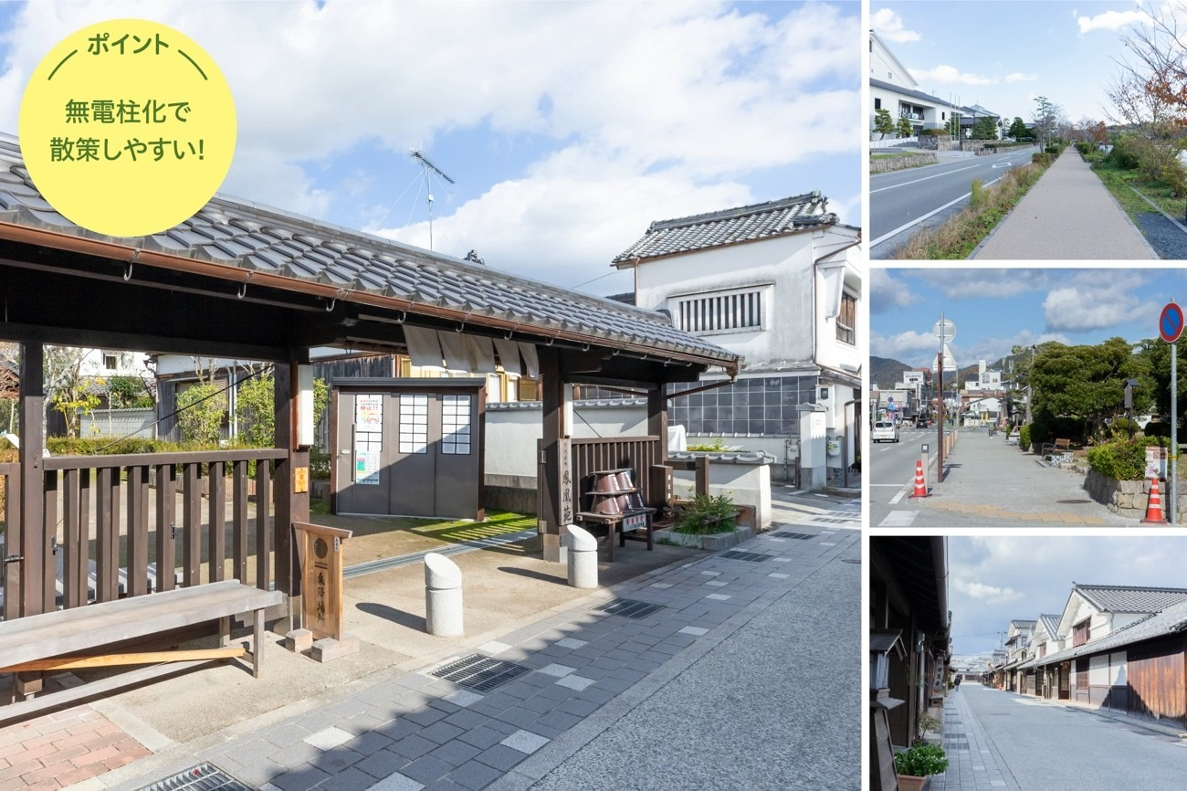 河原町妻入商家群や篠山城跡周辺は、無電柱化を進めて幅の広い歩道を整備。