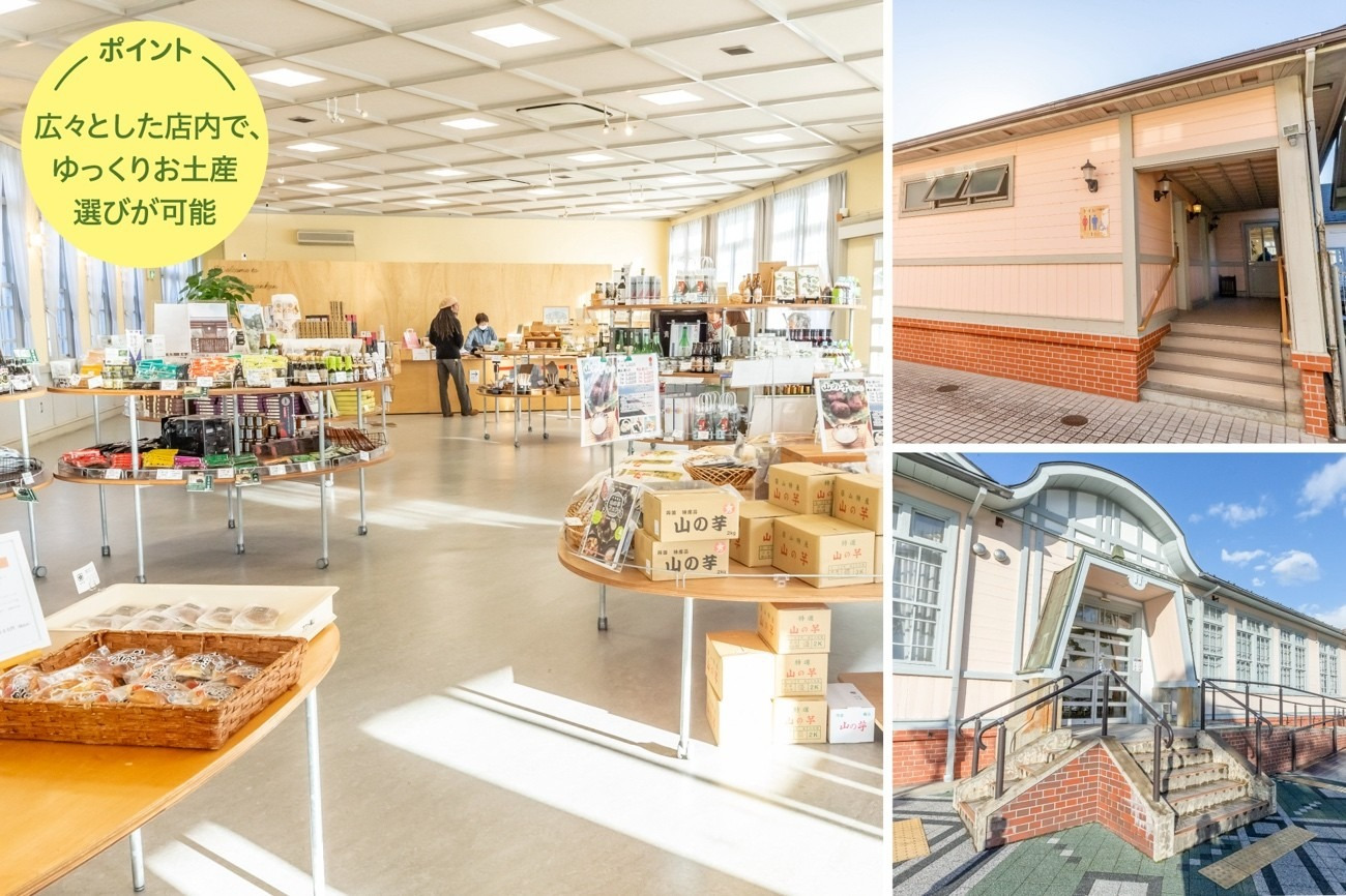 館内の物販コーナーではお菓子や調味料、丹波焼といったクラフトまで地元の特産品が一堂にそろう。また、カフェレストランでは黒豆や猪肉といった地元食材を使ったメニューが充実。人気の黒豆ソフトクリームを味わいながら小休止にぴったりだ。