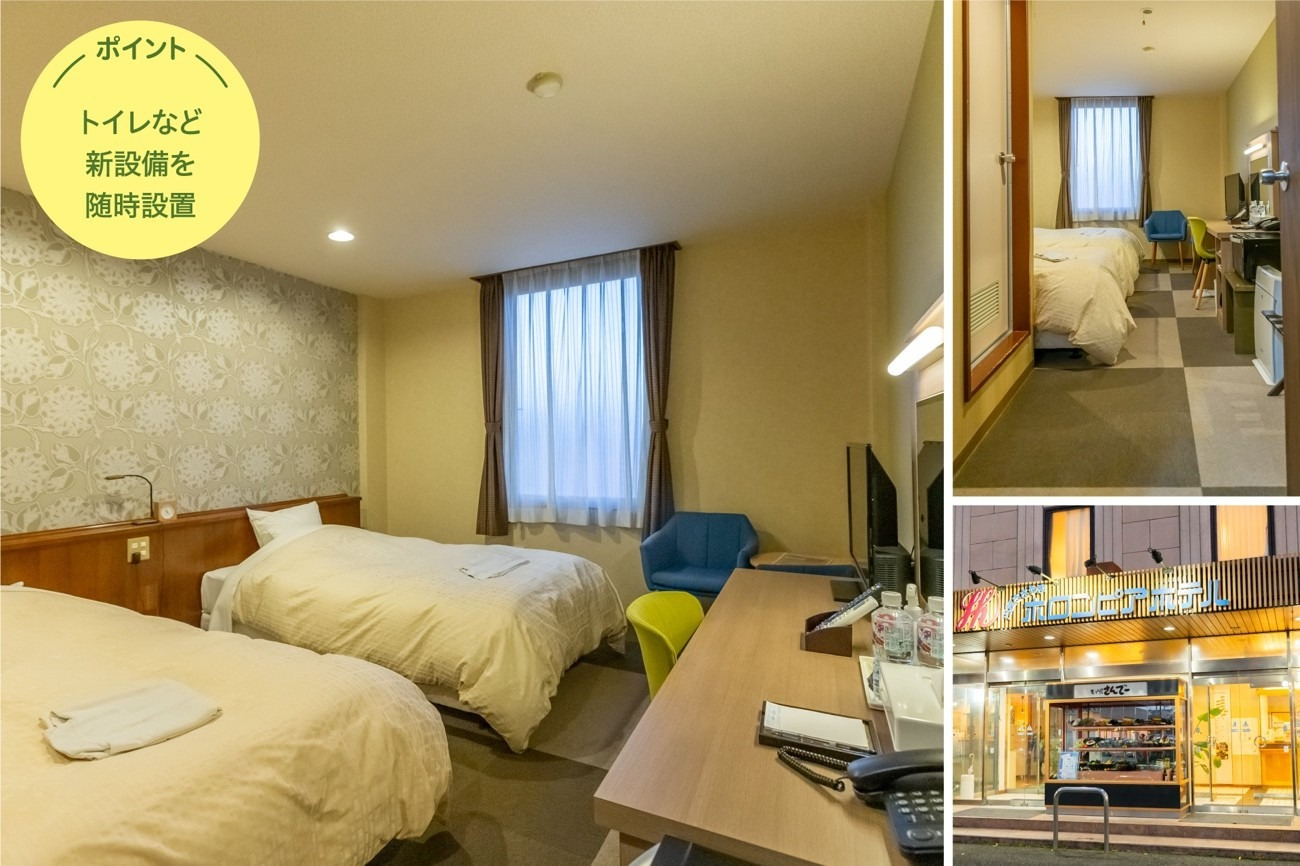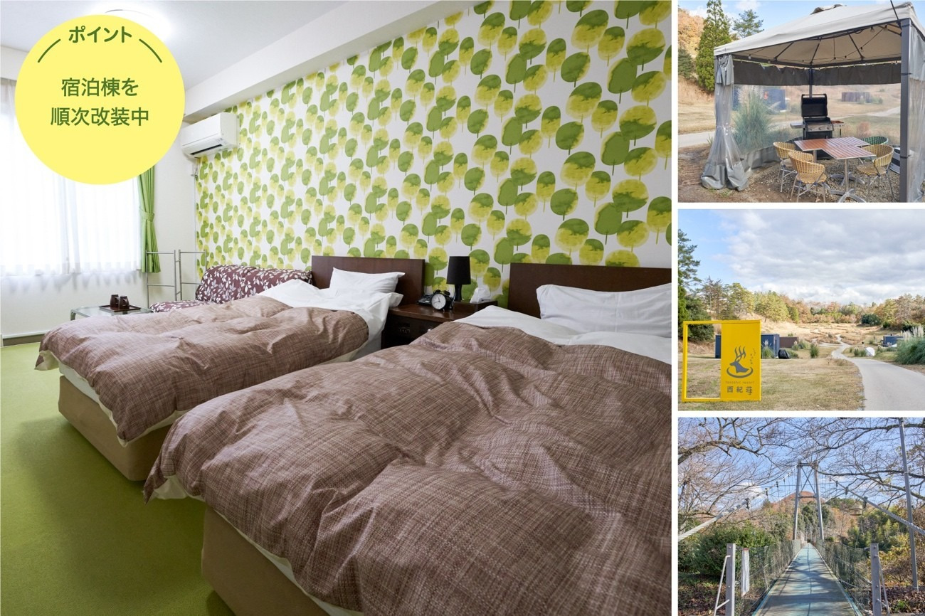 ホテルの客室は洋室ツインルーム。2025年春頃には4名まで宿泊できる洋室も完成予定。