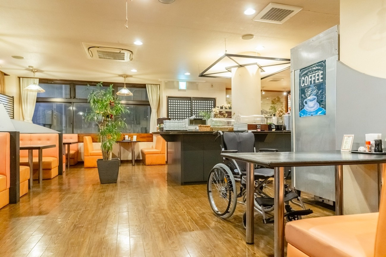 朝食会場のダイニングはフラットな造りのため、車椅子での移動もスムーズに。1階に広々とした車椅子対応トイレを2024年に新設。