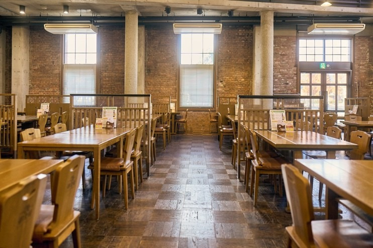 赤レンガ建築の大型食事処