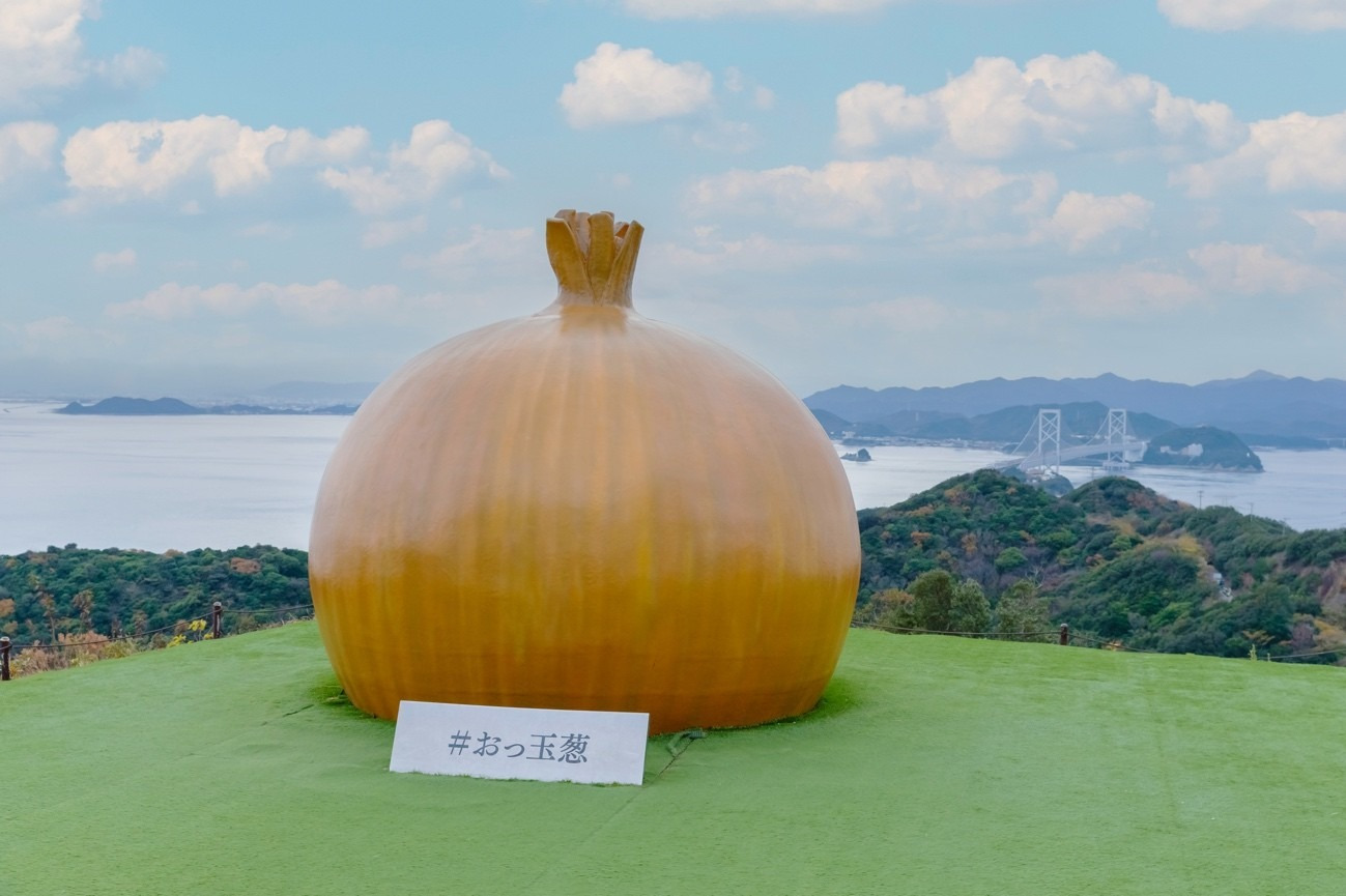 巨大な淡路島玉ねぎオブジェ「おっ玉葱」など、淡路島玉ねぎモチーフのフォトスポットは大人気。