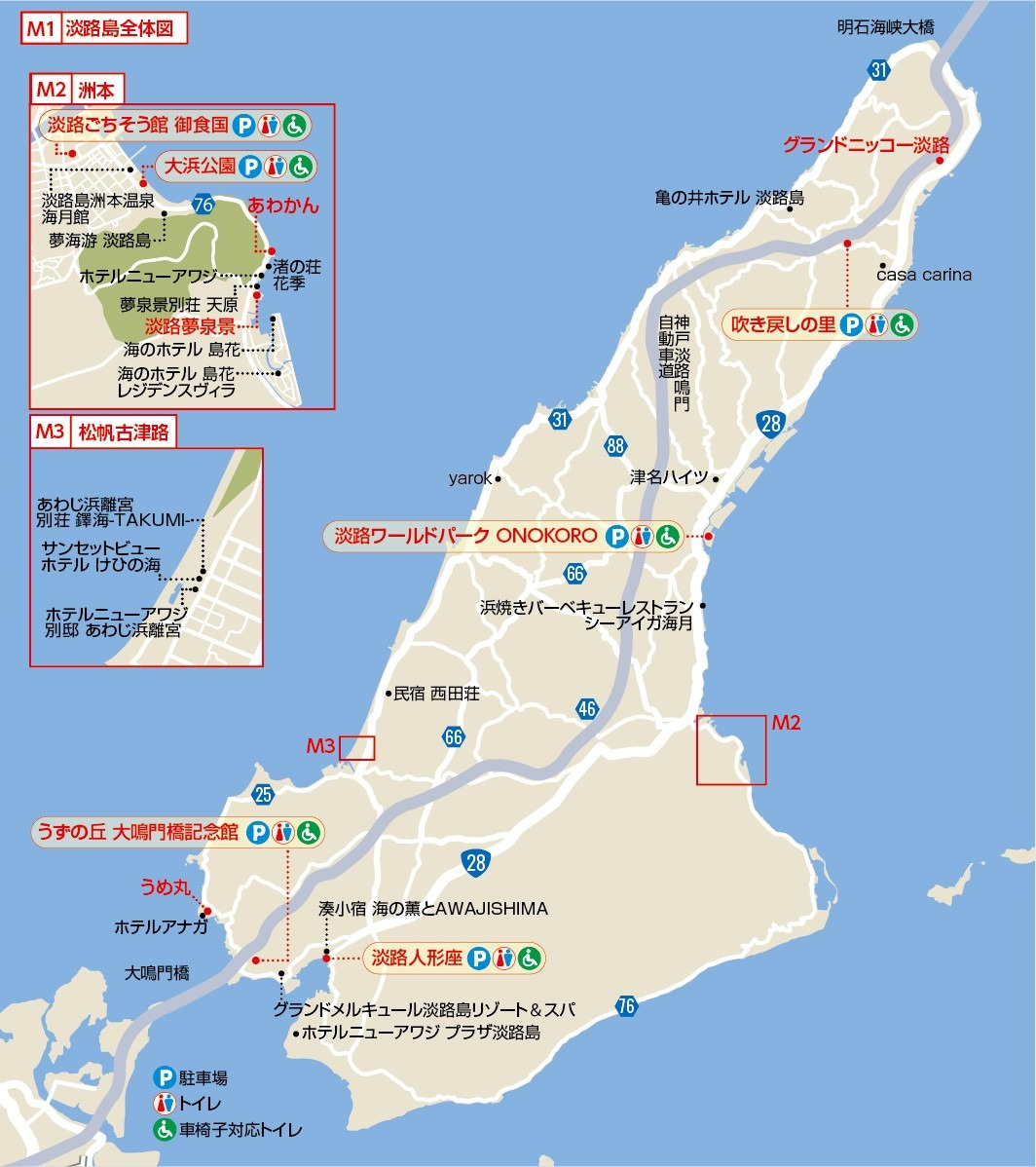 ●casa carina(カーサカリーナ) 0799-70-7258 | ●亀の井ホテル 淡路島 0799-82-1073 |