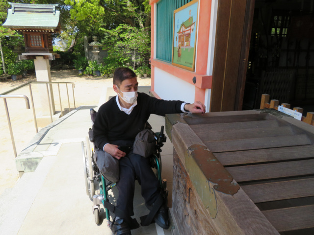 神社内には車いす利用者対応トイレやスロープなどの設置がありユニバーサルな取り組みが進んでいます。