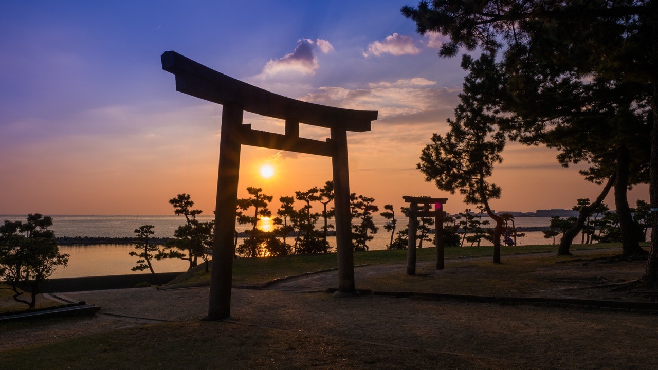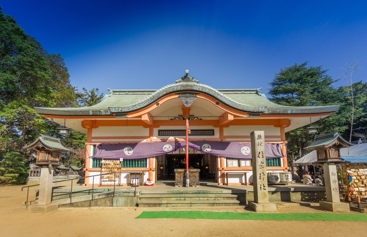 海路の神として古来より崇敬を受けてきた神社です。464年に創建され、住吉大神や神功皇后をお祭りしています。海上安全・厄除け・安産育児などのご利益があり、毎年5月1日の能楽会では仕舞や能が奉納されます。境内には初代明石城主・小笠原忠真が寄進した能舞台など多数の文化財が残るほか、春にはフジ、初夏にはアジサイが咲く花の名所でもあります。また、謡曲「高砂」に住吉、高砂の松の相生にしたとして住吉明神の神徳を称えており、夫婦円満の神でもあります。鳥居から播磨灘を臨む風景は多くの人を魅了します。