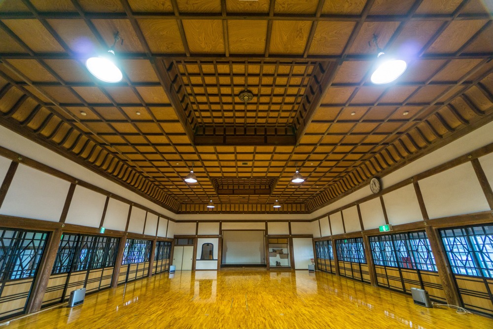 公会堂のこけら落としには夏目漱石が講演した歴史があります。奈良・鎌倉時代の建築様式を取り入れ木造トラス構造を採用しており、2012年に国の登録有形文化財に登録され建築技術史的にも貴重な建造物です。趣のある空間は、現在多目的ホールとして使われ、催し物や講演会などに利用されています。