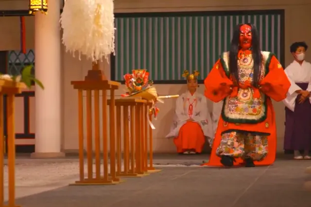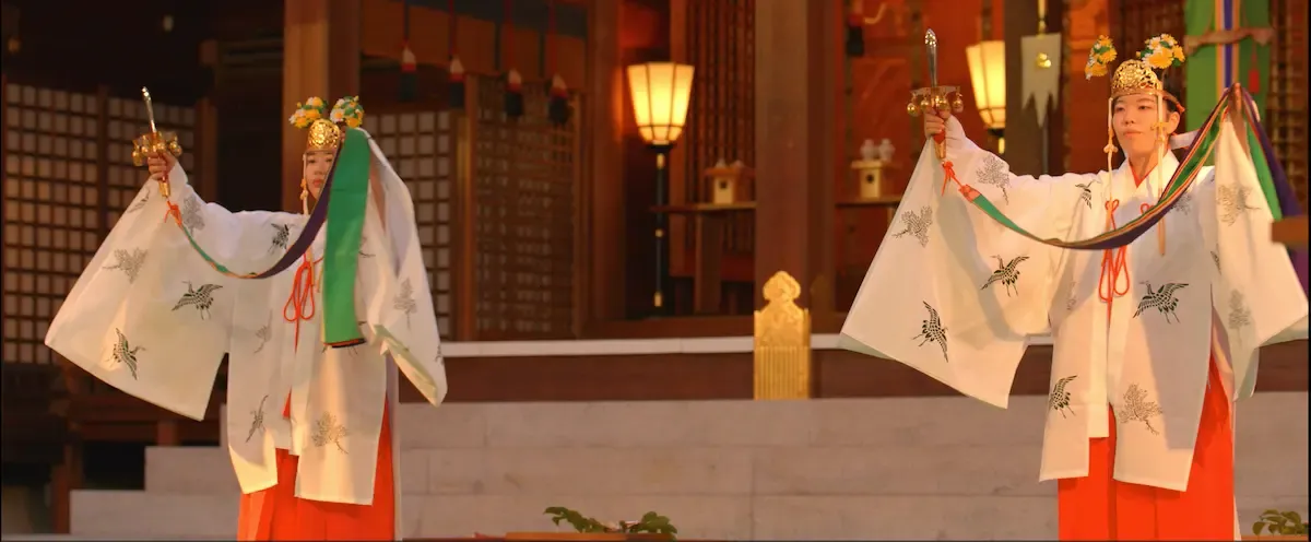 During your visit, the dance of Miko Kagura is performed by shrine maidens ( Miko ) in ceremonial costumes, sometimes with God Songs.